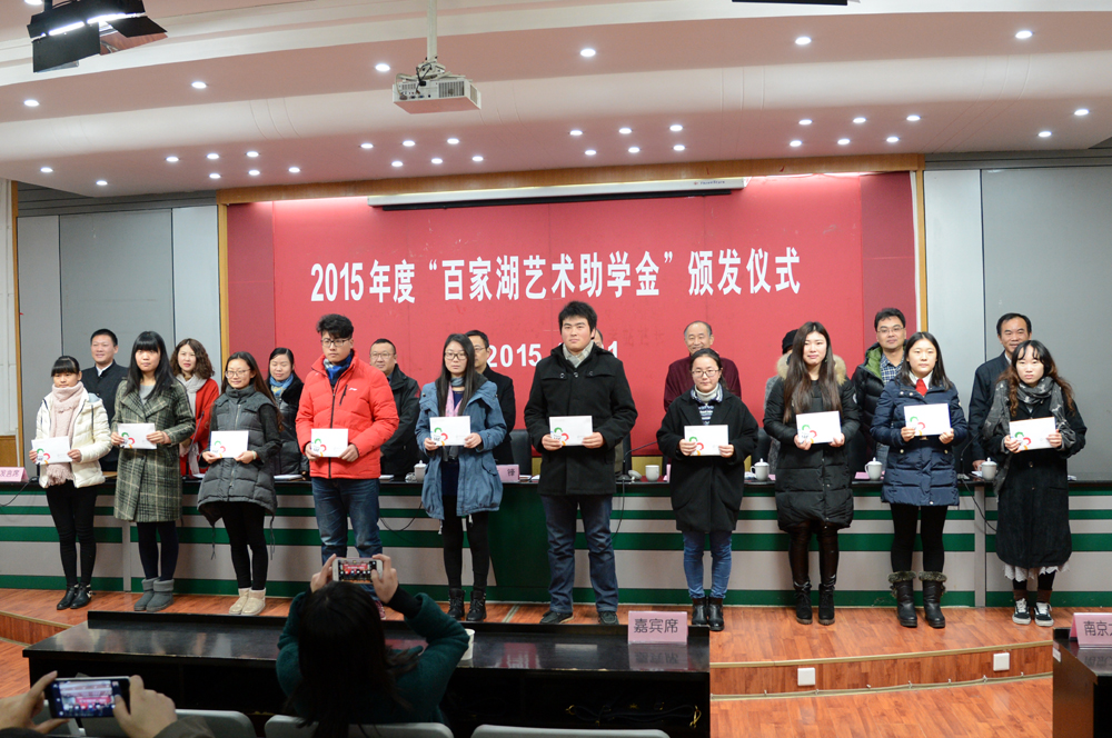 2015年12月21日,由江蘇省華僑公益基金會、南京利源集團(tuán)聯(lián)合舉辦的“百家湖藝術(shù)助學(xué)金”頒發(fā)儀式在南京藝術(shù)學(xué)院舉行。江蘇省僑聯(lián)副主席鎮(zhèn)翔,南京藝術(shù)學(xué)院黨委常委、副院長俞鋒,南京利源集團(tuán)、百家湖國際文化投資集團(tuán)董事長嚴(yán)陸根,南京大學(xué)美術(shù)研究院、南京師范大學(xué)美術(shù)學(xué)院有關(guān)領(lǐng)導(dǎo)及受助學(xué)生參加了助學(xué)金頒發(fā)儀式。儀式現(xiàn)場,與會領(lǐng)導(dǎo) “百家湖藝術(shù)助學(xué)金”40名受助學(xué)生,每人頒發(fā)了5000元助學(xué)金。