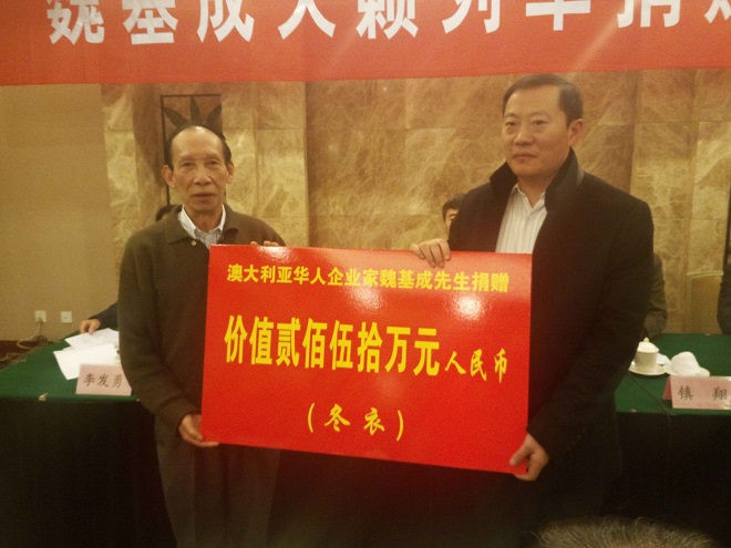 鎮(zhèn)翔代表主辦單位講話,對魏基成先生扶貧助學、熱心公益的善舉表示崇高敬意,向對捐贈工作給予大力支持的各有關單位表示衷心感謝,向受贈老人和聽障孩子們致以誠摯問候。他要求各有關單位嚴格按照捐贈人的意愿,扎實做好受贈物品的發(fā)放工作,做到讓捐贈人放心、使受贈人滿意。他表示,省僑聯、省華僑公益基金會將認真貫徹落實中央扶貧開發(fā)工作會議和習近平總書記重要講話精神,廣泛匯聚僑界愛心人士的力量,大力發(fā)展僑界慈善公益事業(yè),持續(xù)做好扶貧濟困工作,為打贏脫貧攻堅戰(zhàn)作出應有的貢獻。