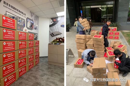 江蘇省僑聯(lián)為幫助海外僑團(tuán)和僑胞更好地防疫抗疫,通過(guò)主管的江蘇省華僑公益基金會(huì)積極開(kāi)展向海外捐贈(zèng)防疫物資工作。很快,來(lái)自社會(huì)各界愛(ài)心人士的捐贈(zèng)物資紛紛就位,如何將大量物資安全順利地發(fā)到海外僑胞手中成了一個(gè)亟待解決的問(wèn)題。當(dāng)省僑聯(lián)領(lǐng)導(dǎo)找到加拿大江蘇國(guó)際商會(huì)尋求幫助時(shí),商會(huì)副會(huì)長(zhǎng)、加拿大Measuretek Enterprise Ltd 董事長(zhǎng)、南京東恒計(jì)量實(shí)業(yè)公司董事長(zhǎng)葉麗梅女士憑借自身企業(yè)多年的國(guó)際貿(mào)易經(jīng)驗(yàn)優(yōu)勢(shì),毫不猶豫地主動(dòng)承擔(dān)起大量國(guó)際物流運(yùn)輸服務(wù)任務(wù)。