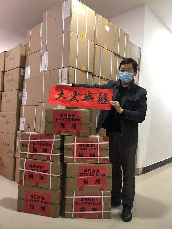 2月28日,宜興市僑聯(lián)將僑聯(lián)機(jī)關(guān)干部及部分僑界朋友的15200元捐款,全部用于采購(gòu)消毒用品,對(duì)口支援黃石及大冶市疫情防控阻擊戰(zhàn)。