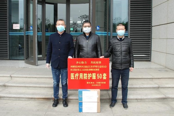 3月4日上午11:00,西雅圖蘇州同鄉(xiāng)會(huì)通過(guò)江蘇省華僑公益基金會(huì)捐贈(zèng)的50件杜邦醫(yī)療用防護(hù)服順抵達(dá)無(wú)錫市僑聯(lián)。無(wú)錫市僑聯(lián)黨組書(shū)記、市委統(tǒng)戰(zhàn)部副部長(zhǎng)李鎮(zhèn)國(guó)出席捐贈(zèng)儀式。