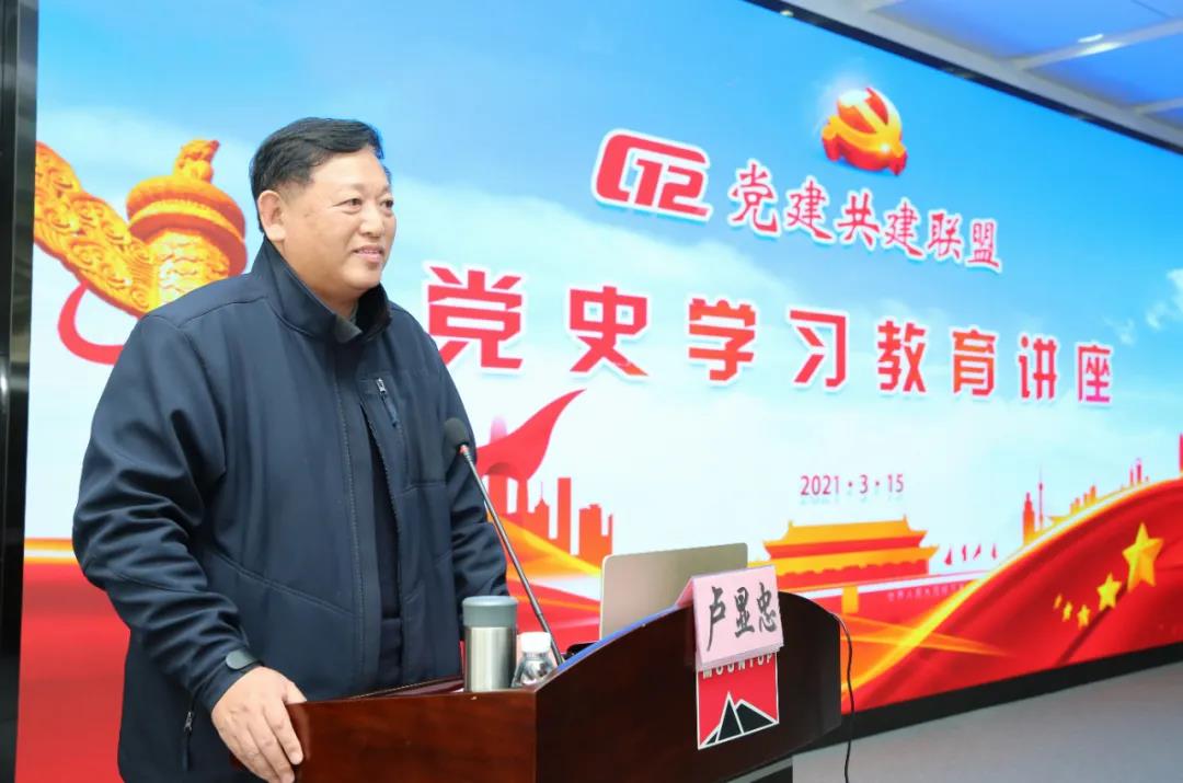 黨課在《沒有共產(chǎn)黨就沒有新中國》的歌聲中隆重開始。首先,大峘集團(tuán)名譽(yù)董事長盧顯忠致辭,他首先對羅志堅(jiān)教授專程為G12授課表示感謝,并對G12黨建共建各單位的到來表示歡迎。他介紹到G12黨建共建聯(lián)盟與江西省委黨校有著良好的合作關(guān)系,2020年9月,在江西省委黨校的大力支持下,G12黨建共建聯(lián)盟在革命圣地井岡山組織了“傳情天下 相約井岡”——G12井岡山紅色集體婚禮。會(huì)上,全體黨員一同觀看了《G12井岡山紅色集體婚禮》視頻。