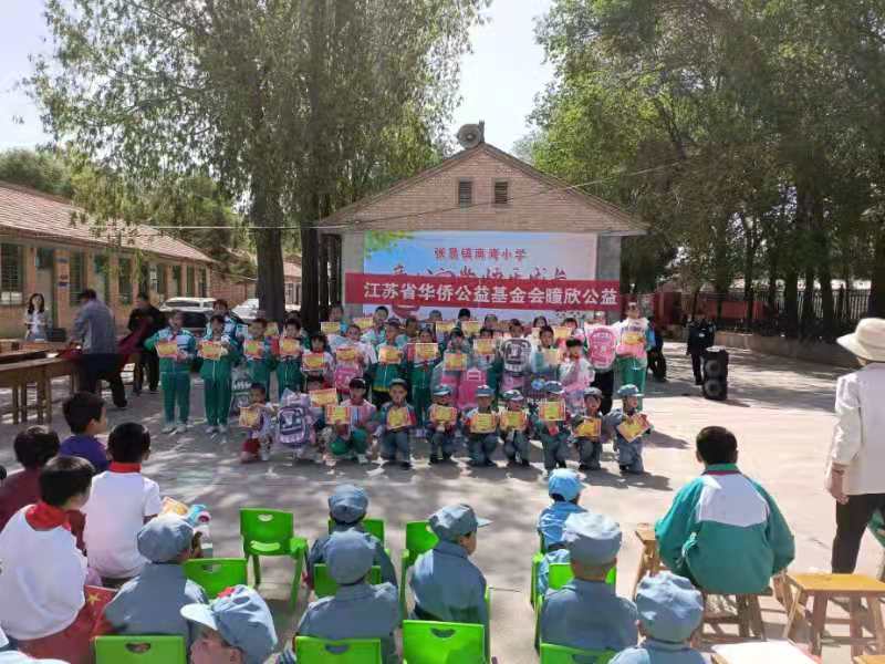 “六一”前夕,省華僑公益基金會瞳欣公益專項基金分別向南京市南昌路小學(xué)、寧夏固原市原州區(qū)黃堡小學(xué)和南灣小學(xué)學(xué)生贈送累計16254元的愛心書包和文具用品、讀書卡等,并鼓勵他們刻苦學(xué)習(xí),做自立自強好少年。