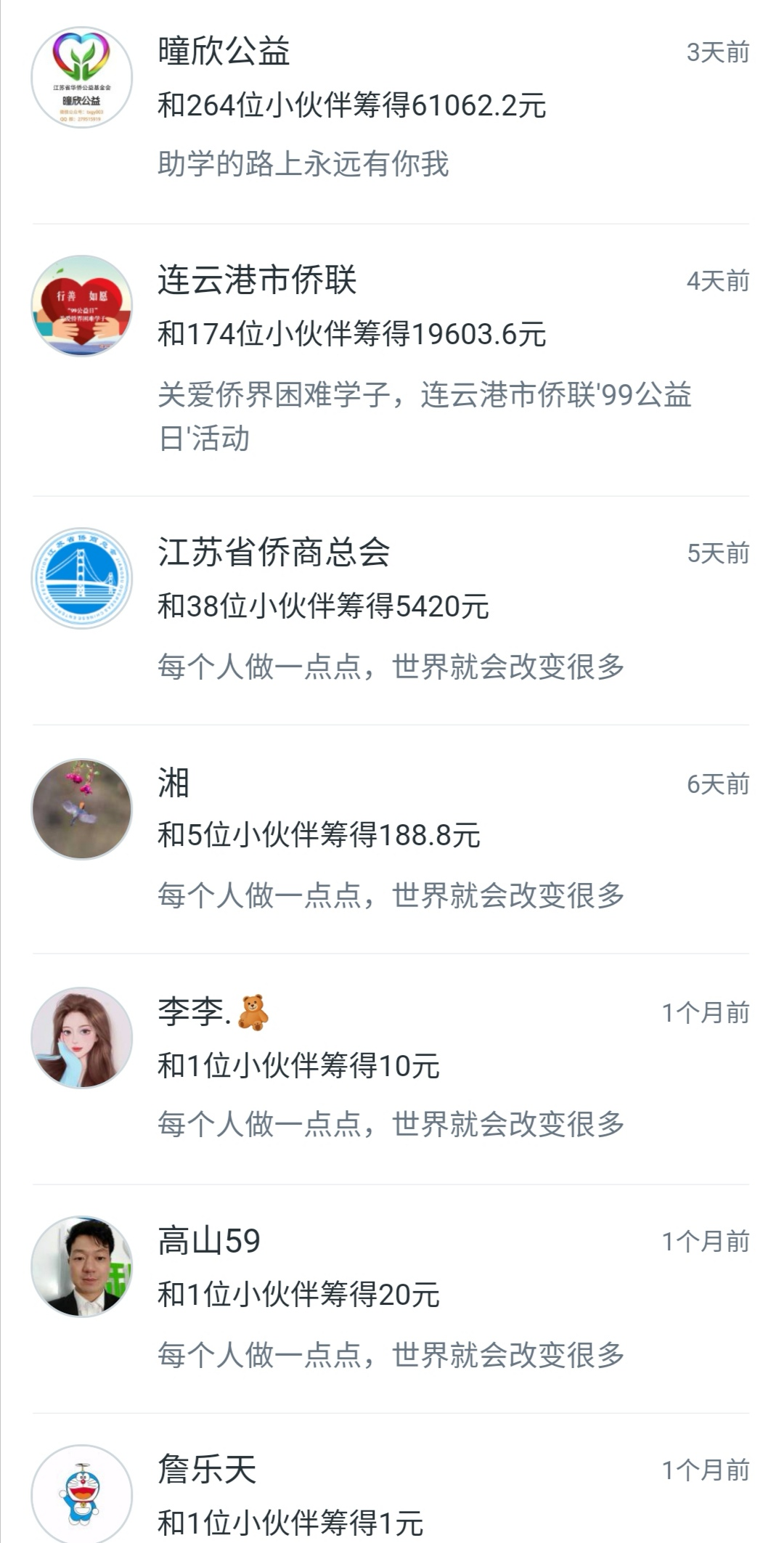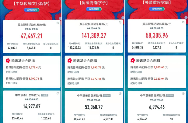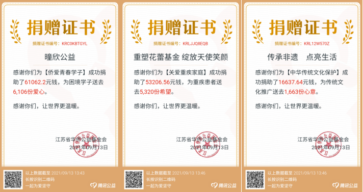 2021年的99公益大幕落下,留下的是滿滿的感動(dòng)與感恩。9.5,9.7-9.9在這充滿溫度的四天里,《僑愛青春學(xué)子》《關(guān)愛重疾家庭》《中華傳統(tǒng)文化保護(hù)》等項(xiàng)目被社會(huì)各界愛心人士用捐贈(zèng)善款、捐步獻(xiàn)愛心、公益答題、捐贈(zèng)小紅花等多種形式關(guān)注著。每個(gè)人的一份愛心,匯成愛的暖流,溫暖著項(xiàng)目的受眾群體,溫暖著每一位慈善的參與者。