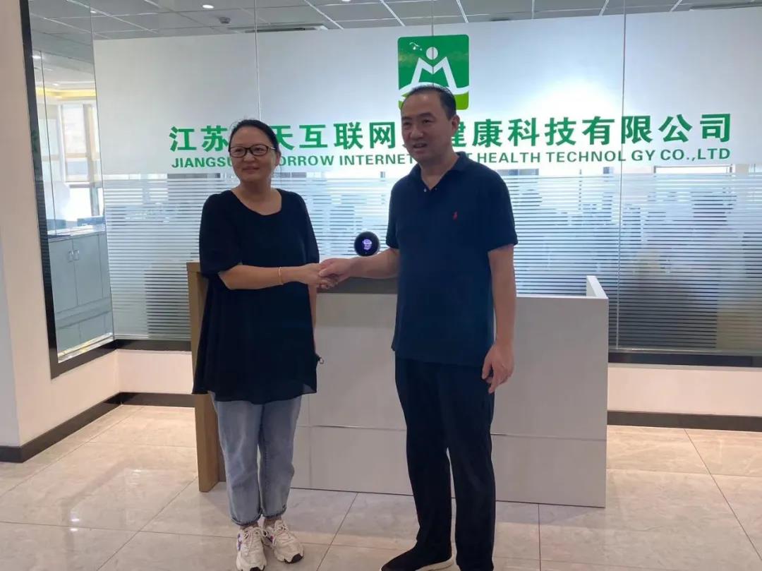 10月8日國慶節(jié)假剛過,江蘇省華僑公益基金會僑援基金主席、南通市崇川區(qū)僑商聯(lián)合會秘書長、南通華僑圖書館副館長梁丹攜同區(qū)僑商會會員企業(yè)一起走訪考察了江蘇明天互聯(lián)網(wǎng)大健康科技有限公司。公司姜華董事長熱情接待了梁主席一行。
