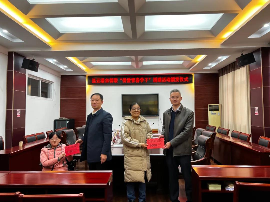 2021年11月30日,連云港市僑聯(lián)在江蘇海洋大學文法學院開展“我為群眾辦實事”暨“僑愛青春學子”捐助活動,將在“99公益日”期間由連云港市僑界群眾、僑商、僑青以及海外僑領、僑胞捐贈的1.4萬元分別贈予江蘇海洋大學文法學院家庭經(jīng)濟困難學生張勇和霍云霄。一個愛心傳遞的感人故事由此拉開帷幕。