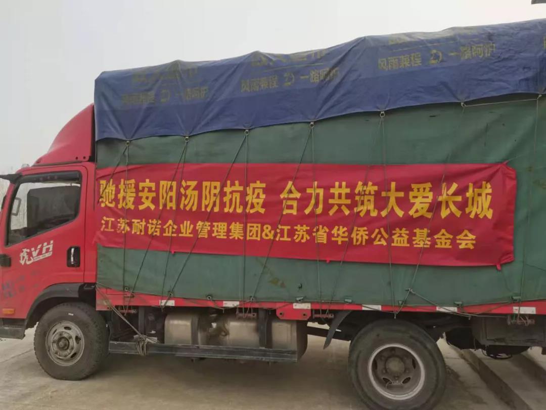 18日上午,由江蘇耐諾企業(yè)管理集團捐贈的抗疫物資向安陽市湯陰縣出發(fā)。