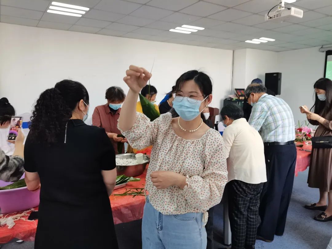 “先拿一片粽葉把它卷起來,折一個角,這樣米就不會漏出來?!币恍┎粫兆拥哪贻p人擼起袖子學(xué)包粽子,在叔叔阿姨們的傳幫帶下,大家手法逐漸嫻熟,各式各樣的粽子擺滿了盤子,整個活動現(xiàn)場充滿了歡聲笑語。