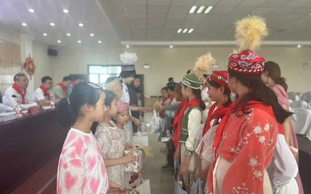 活動(dòng)開始,新源的少先隊(duì)員為領(lǐng)導(dǎo)及遠(yuǎn)道而來的聯(lián)盟企業(yè)家們獻(xiàn)紅領(lǐng)巾、行隊(duì)禮,兩地小朋友們通過一對(duì)一互換禮物、互加微信等方式開展結(jié)對(duì)聯(lián)誼。此外,新源的小朋友們精心準(zhǔn)備了才藝展示,帶來了哈薩克族舞蹈、拉丁舞曲,一首哈薩克族歌曲《一壺奶茶》瞬間把大家?guī)У搅四抢岽蟛菰?,?jié)目精彩紛呈,現(xiàn)場(chǎng)掌聲不斷。