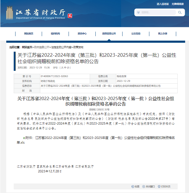 江蘇省華僑公益基金會(huì)具有2023年度-2025年度公益性社會(huì)組織捐贈(zèng)稅前扣除資格。