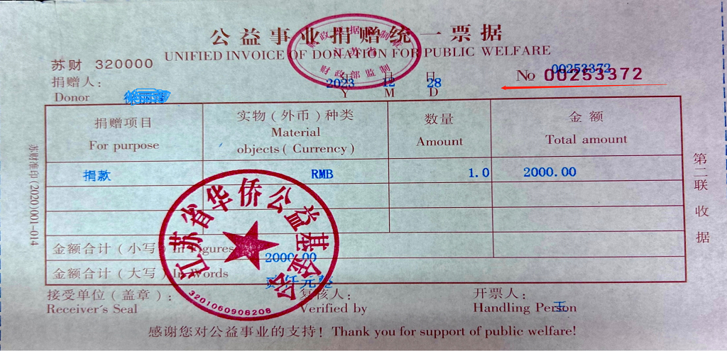 受贈(zèng)單位名稱:江蘇省華僑公益基金會(huì)