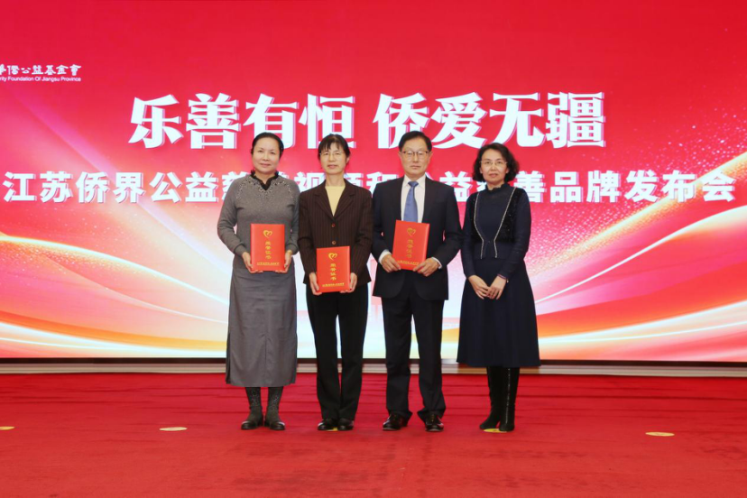 換屆大會后,舉行了江蘇僑界慈善公益視頻和慈善公益品牌現(xiàn)場發(fā)布會。