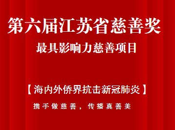 值此第七個(gè)“中華慈善日”之際,江蘇省華僑公益基金會(huì)的“海內(nèi)外僑界抗擊新冠肺炎”公益項(xiàng)目,榮獲“江蘇省慈善獎(jiǎng)”最具影響力慈善項(xiàng)目。 ...