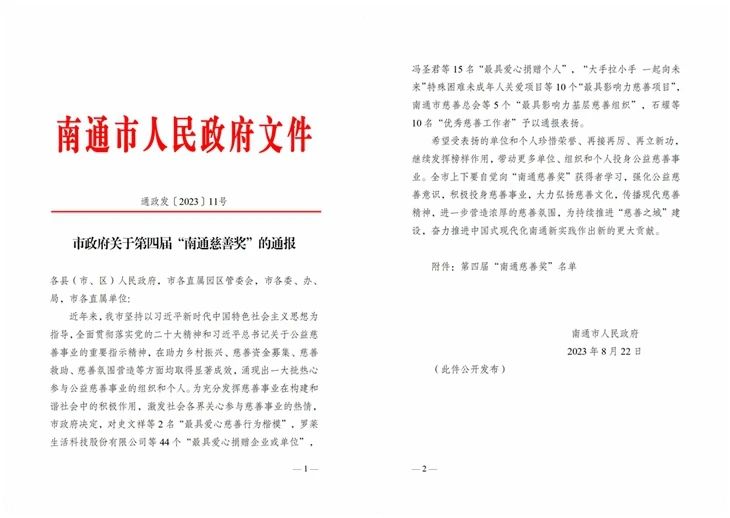 近日,市政府通報(bào)了獲得第四屆“南通慈善獎(jiǎng)”的組織和個(gè)人,南通市僑聯(lián)僑界專家委員會(huì)名譽(yù)顧問(wèn)單位江蘇安惠生物科技有限公司被通報(bào)表?yè)P(yáng)為“最具愛(ài)心捐贈(zèng)企業(yè)或單位”,江蘇安惠生物科技有限公司團(tuán)委書記、...