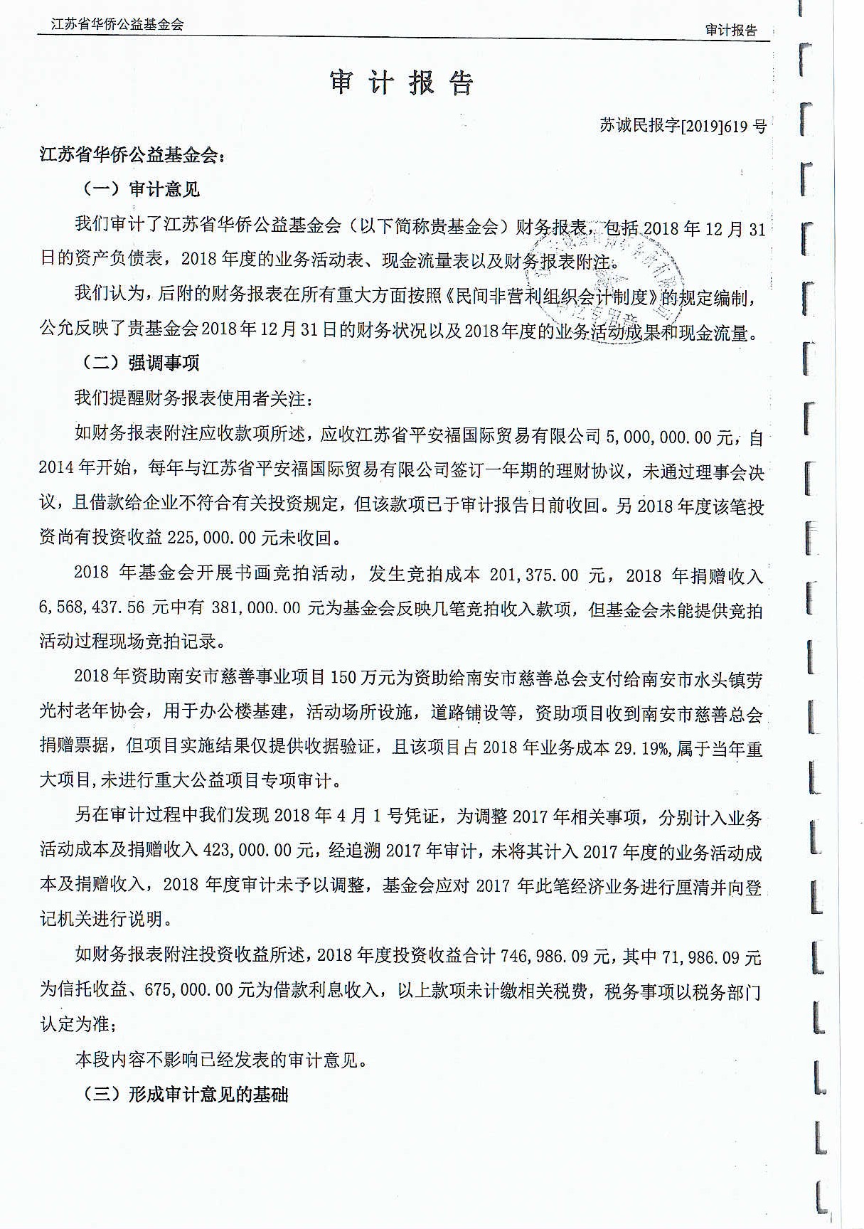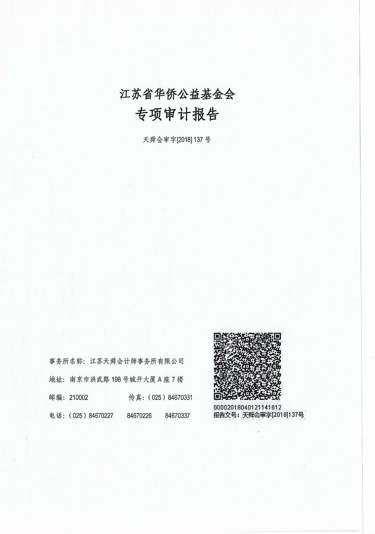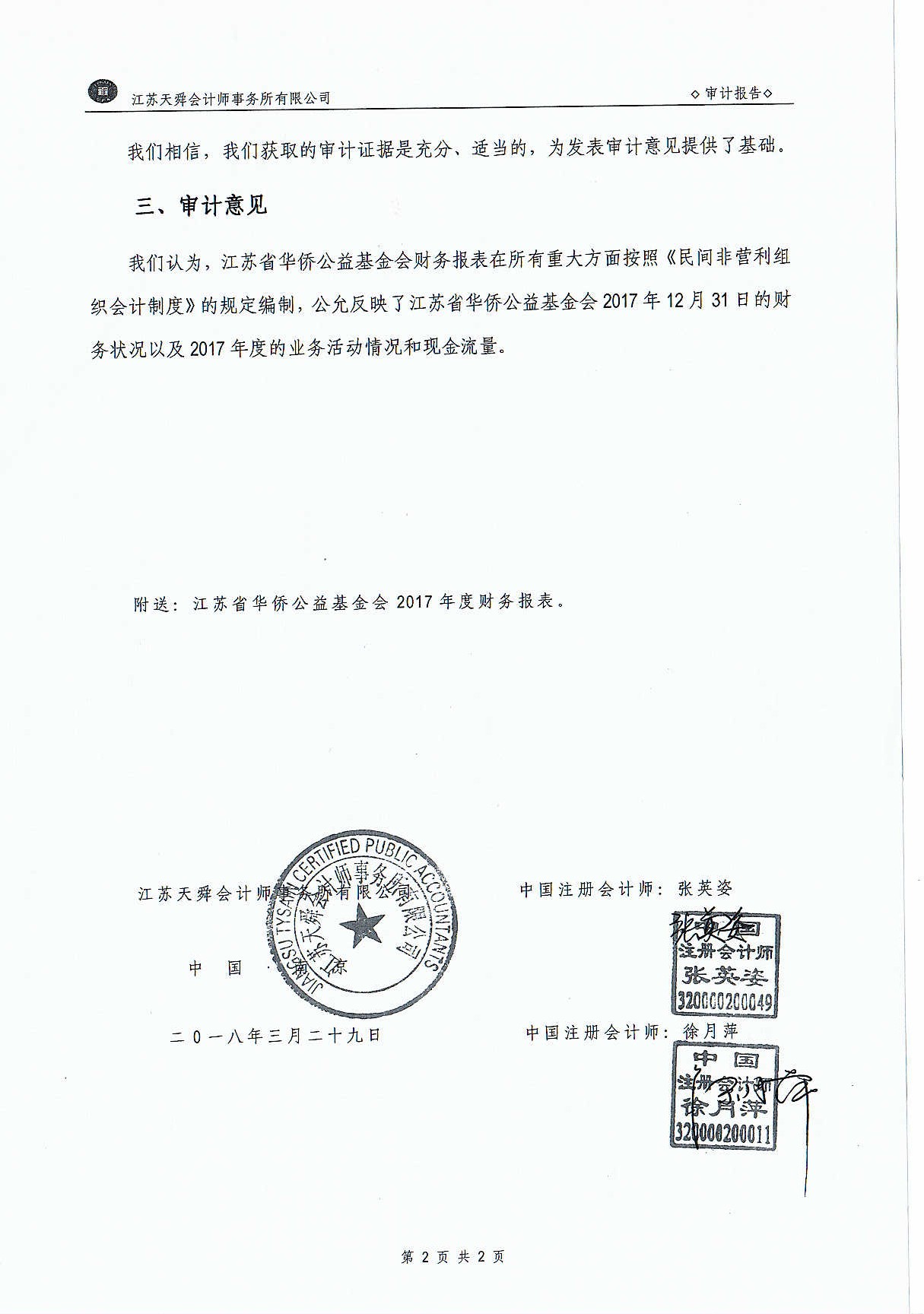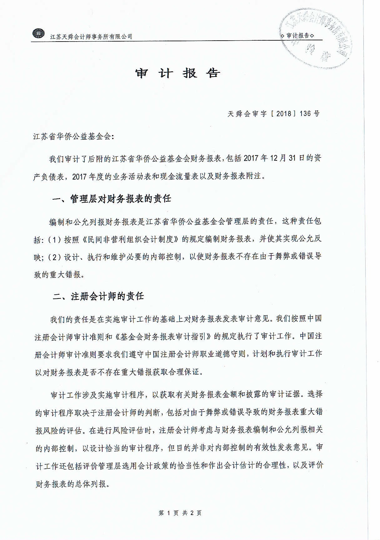 江蘇省華僑公益基金會(huì)2017年審計(jì)報(bào)告和2018年審計(jì)報(bào)告