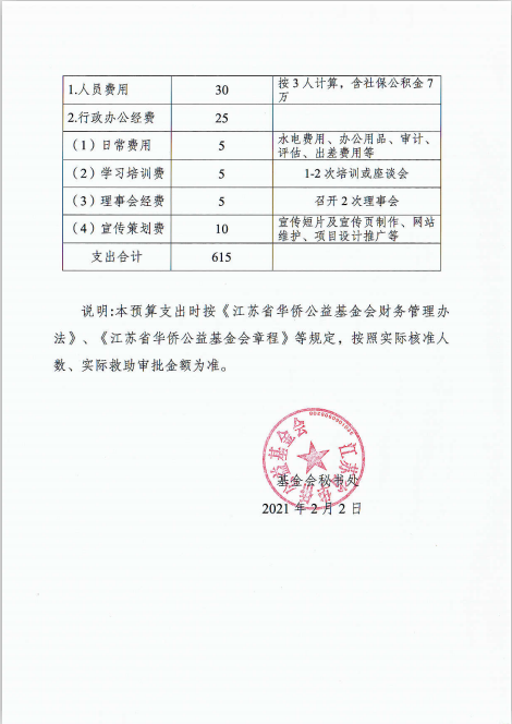 江蘇省華僑公益基金會2021年度財務(wù)預(yù)算及說明