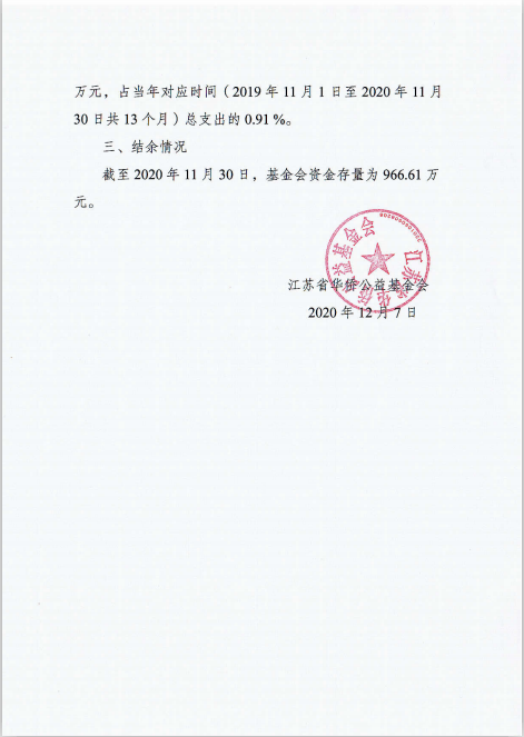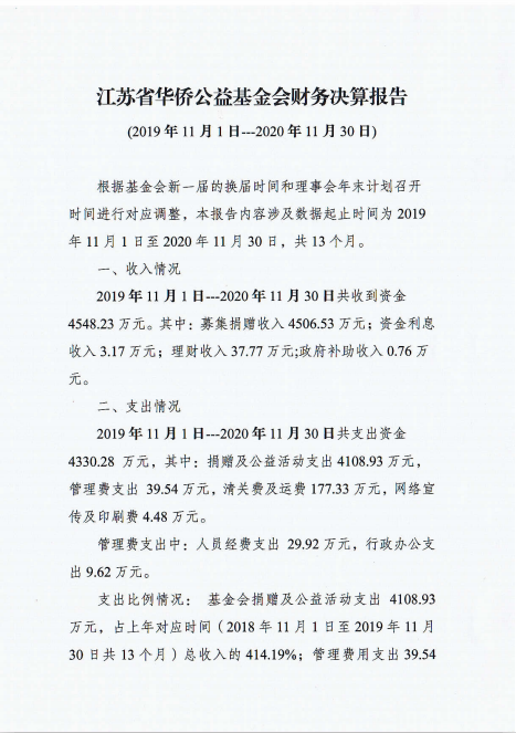 江蘇省華僑公益基金會財務決算報告(2019年11月1日-2020年11月30日)