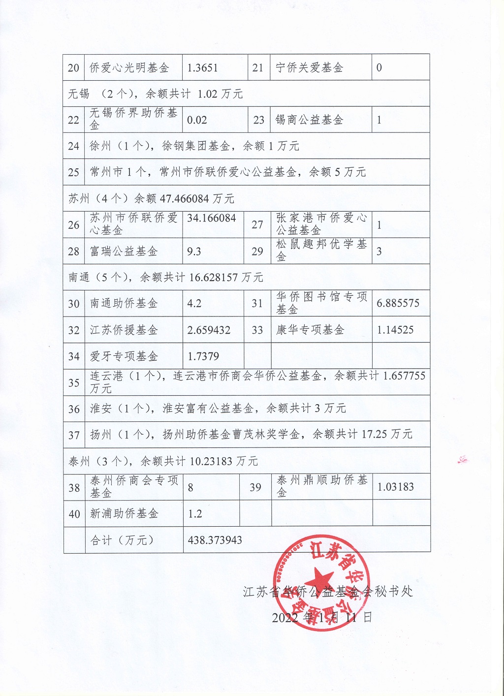 2021年省華僑公益基金會(huì)專項(xiàng)(項(xiàng)目)基金余額情況公示