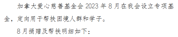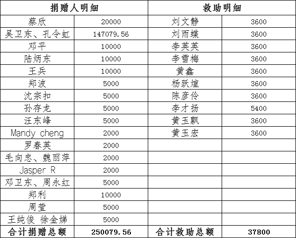江蘇省華僑公益基金會加拿大愛心慈善基金會專項收支明細(xì)